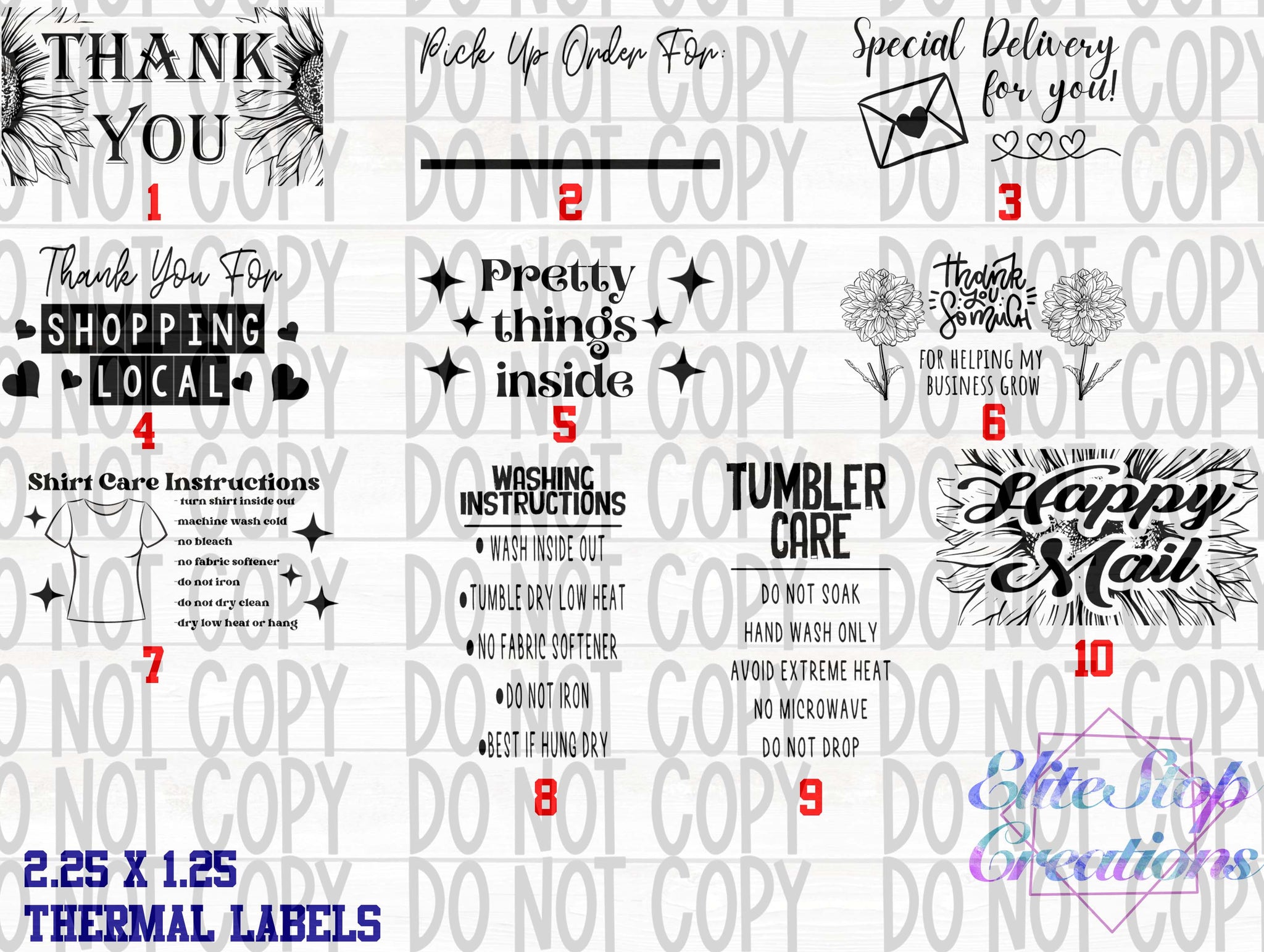 These are premade and can go on anything from your packaging supplies to invoices!